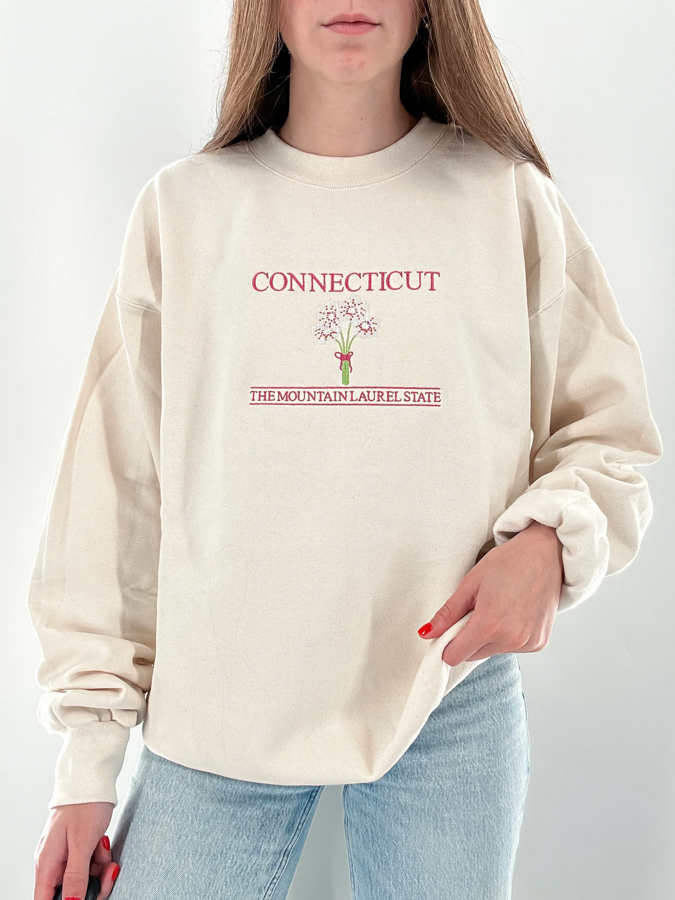 MADE TO ORDER Connecticut: The Mountain Laurel State Embroidered Crewnecks | Cierrah's Clothing Co
